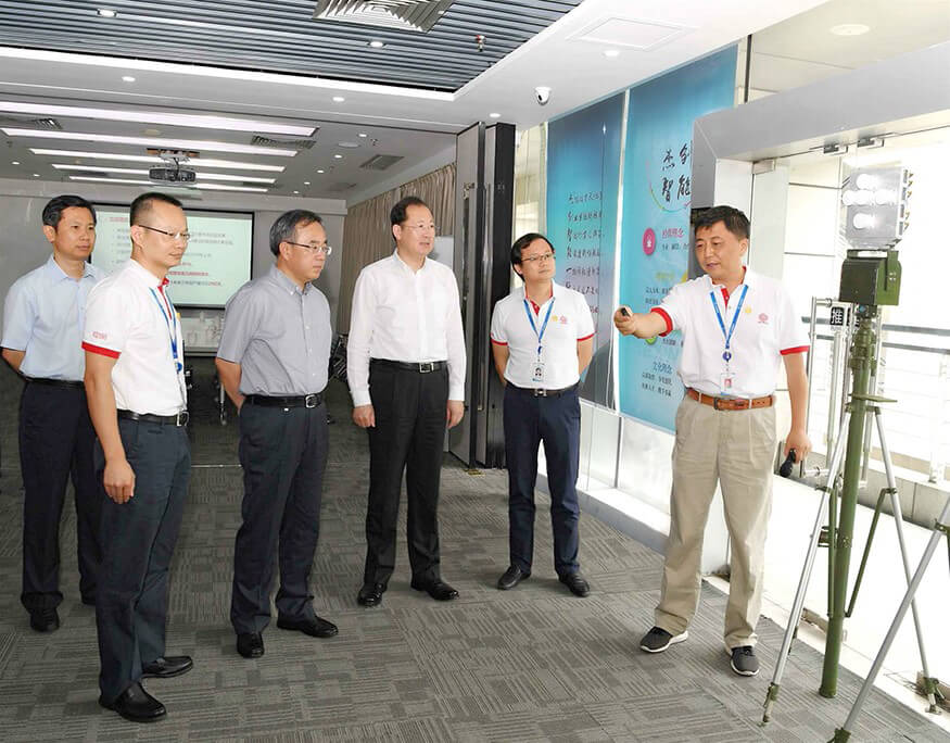 今年会jinnianhui智能研发中心总经理朱勇杰为胡春华书记一行介绍公司产品